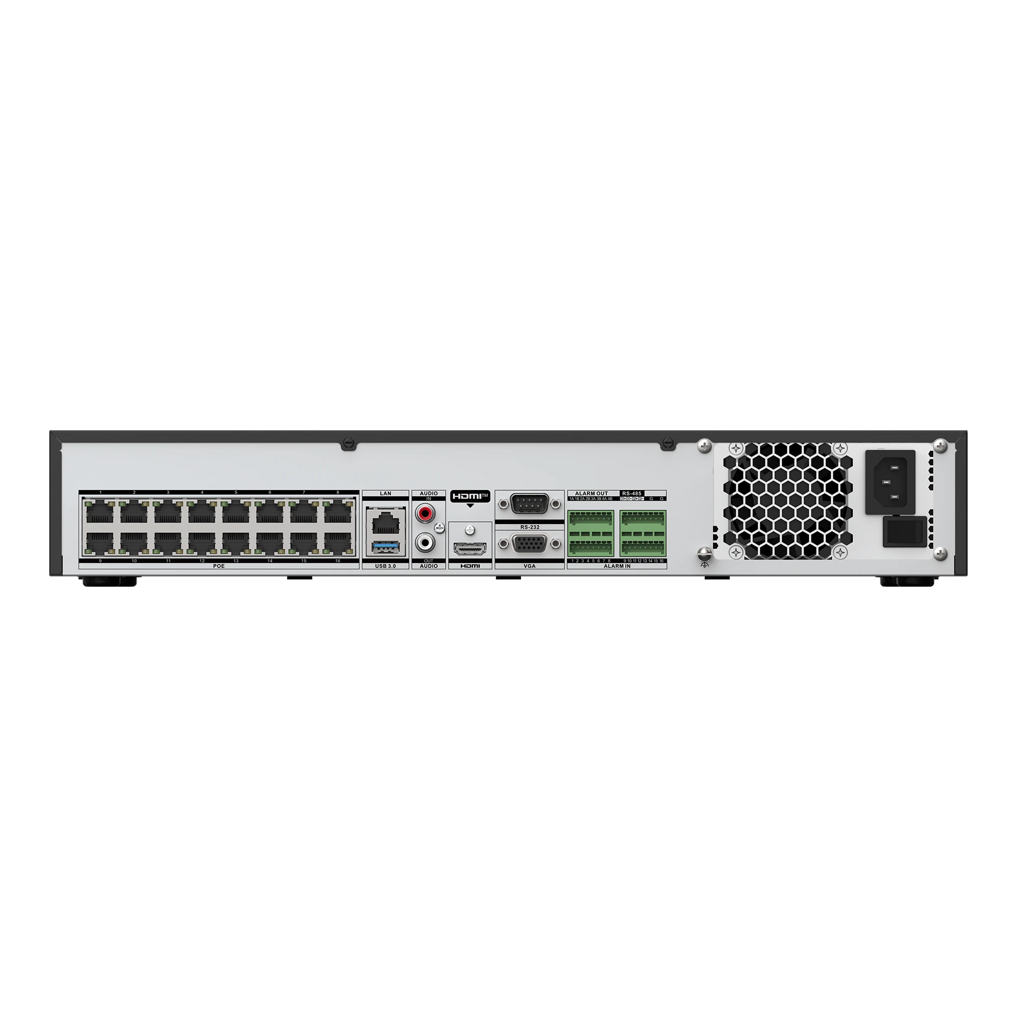 - IP video input: 32 channels (supports up to 12 MP, 8 MP, 6 MP, 5 MP, 4 MP, etc.)